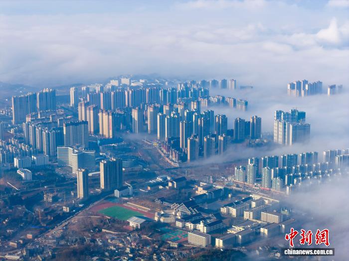 1月3日清早,贵州省毕节市威宁彝族归族苗族自制县乡中呈现仄淌云好景,乡市下楼正在云雾中一目了然,琳琅满目,好像“天外之乡”。管庆巍 摄